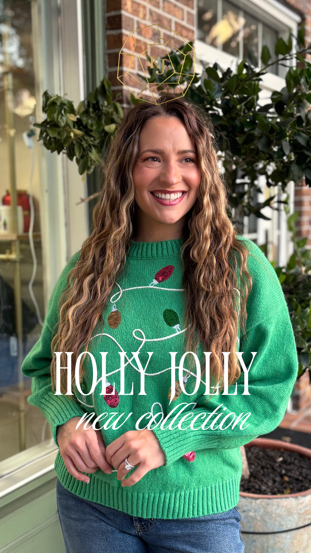 Colorful Christmas-Light Embellishment Cozy Sweater - Green