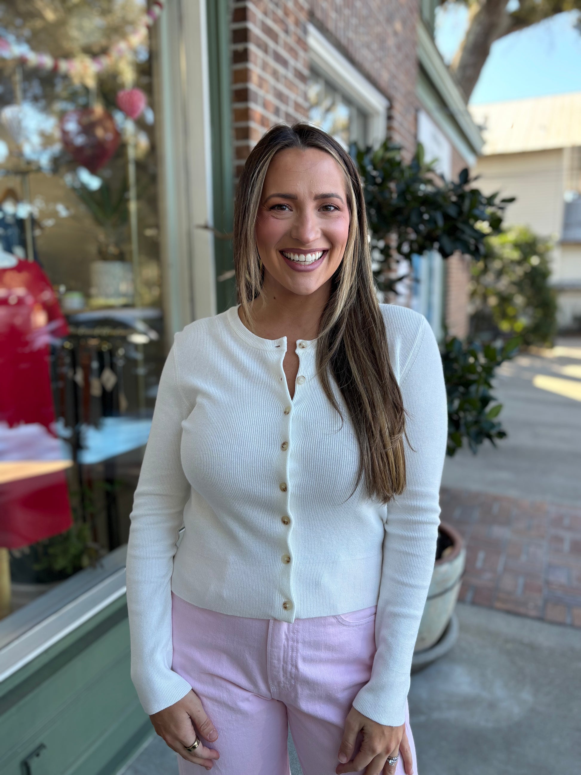 LIGHTWEIGHT * RIBBED * CREWNECK * BUTTON UP CARDIGAN * LONG SLEEVES * FITTED