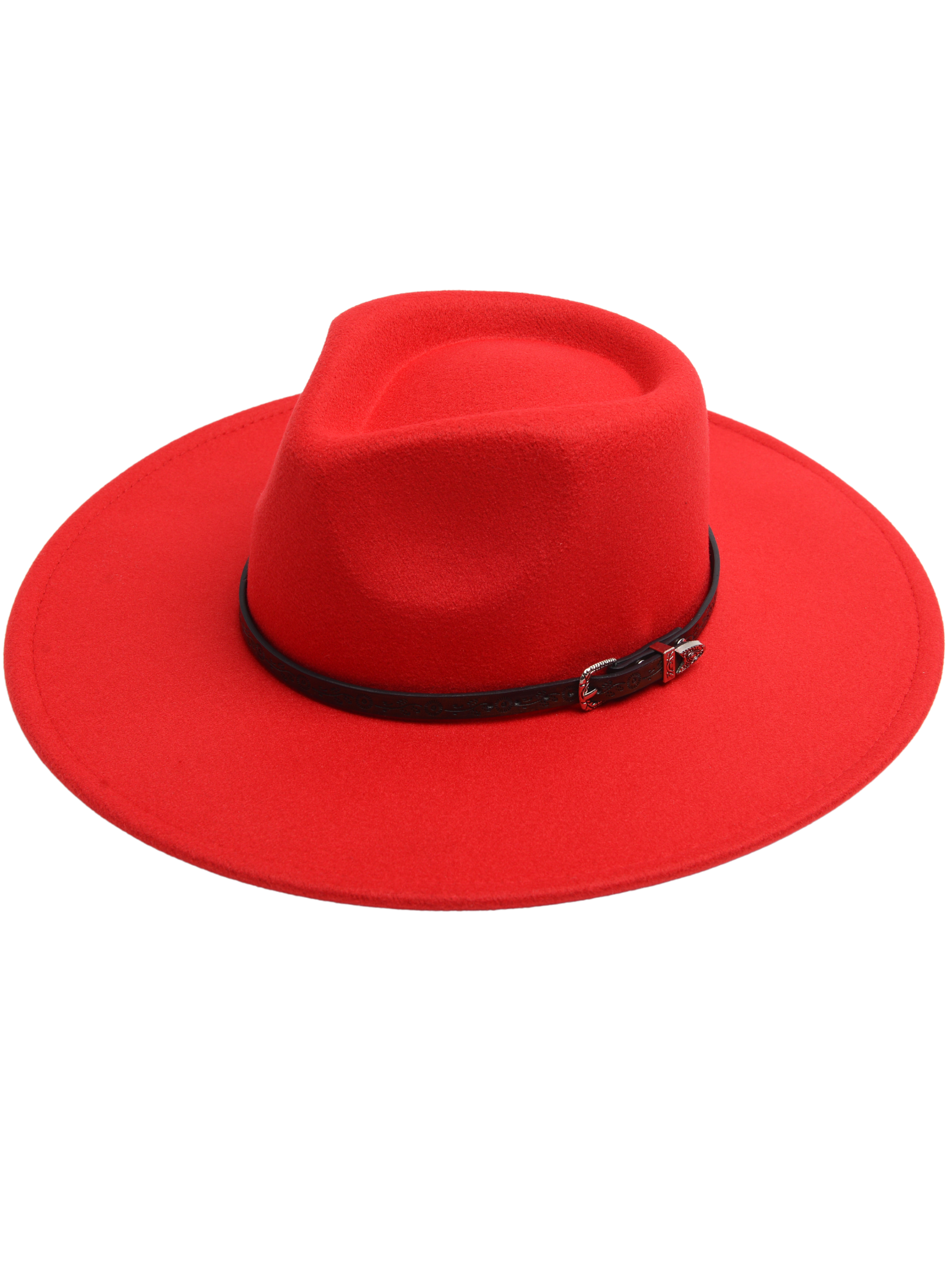 Women's Vegan Felt Rancher Hat with Floral Band Belt Band: Red